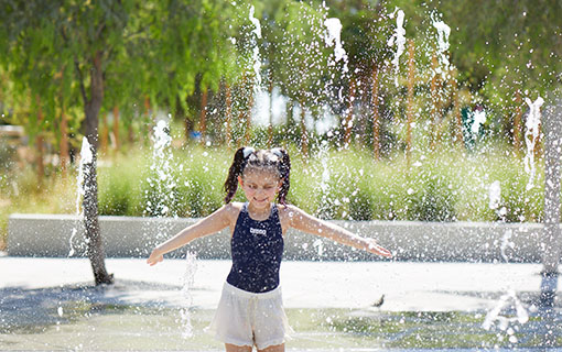تستخدم حديقة الفي مياهً أقل بنسبة 50٪ من المنتزهات التقليدية, وذلك من خلال تكييف التربة واستخدام أنظمة الري الحديثة،
