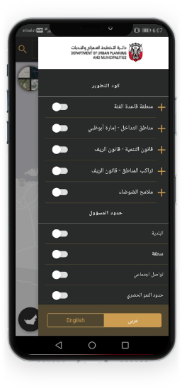 تطبيق أرضي هي منصة جيومكانية سهلة الاستخدام يخدم المتعاملين من خلال استعراض بيانات القسائم و معلومات أخرى مهمة مثل اشتراطات البناء والمرافق المجتمعية وتكامل التطبيق مع نظام العنونة على مستوى امارة ابوظبي. يتميز التطبيق بإمكانية مسح رمز الاستجابة السريع الموجود في مخطط أرض للحصول على جميع المعلومات الخاصة بالأرض.